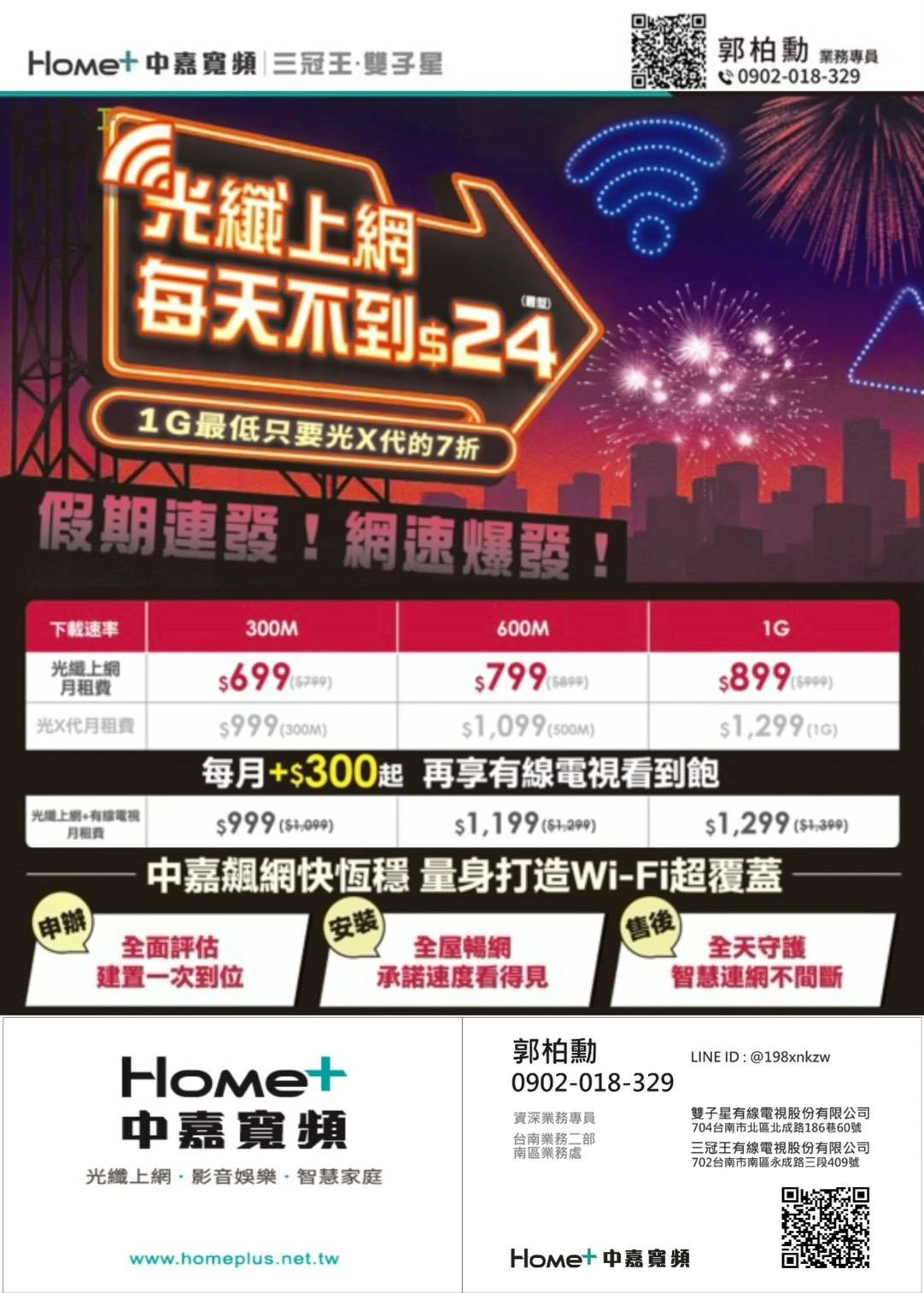 - 申辦 300M 方案,每日最低不到 $24,就能讓您輕鬆享受超快網速,告別網路塞車的痛苦!